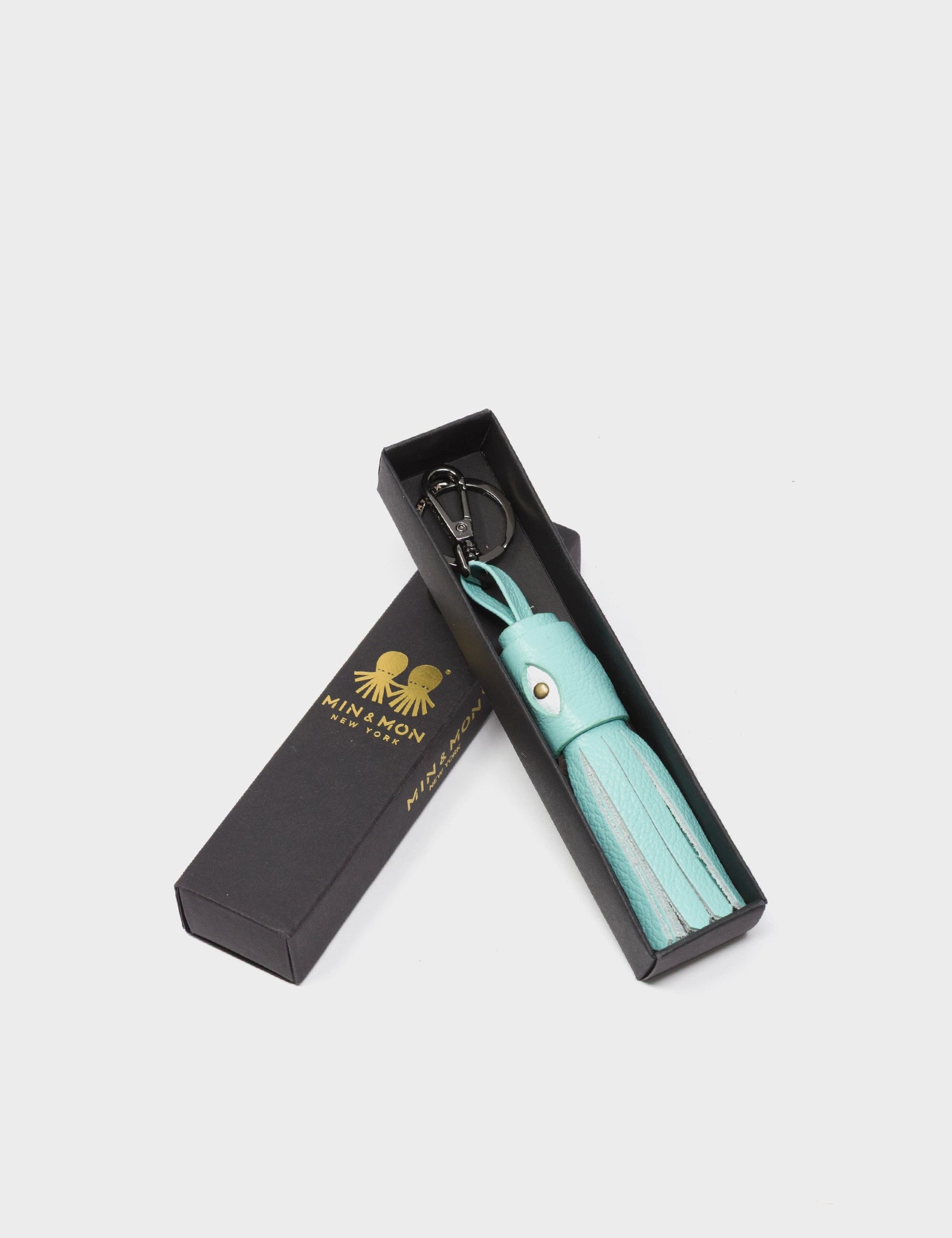 Callie Marie Hue Charm - Eggshell Blue Leather Keychain