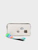 LumiVision is pleased to bring you the Francis wallet! Our Francis wallet is available in black or cream colored leather, but don’t worry, there’s nothing plain about them! Inviting your other senses to engage with the piece, the entire wallet is texturized by the debossed All Over Eyes pattern and is given added dimension with three permanent enamel pins. The brightness begins at the zipper and a nylon lanyard. Take a peek inside to find our monogrammed cotton lining and accordion folded green leather that forms two slip pockets. There’s plenty of space for your necessities with an interior zip pocket and 8 card slots. Your adventures await and Francis is ready for the trip!