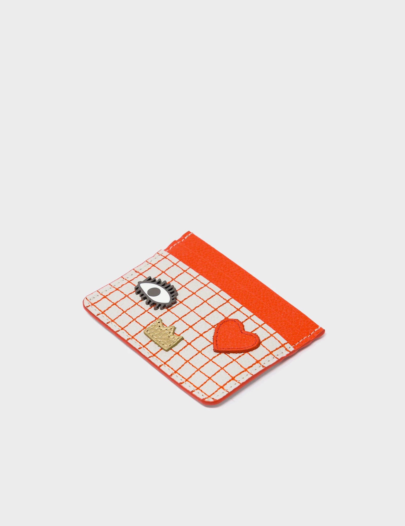 Filium Cream and Fiesta Red Leather Cardholder - Classic Eye and Heart Applique