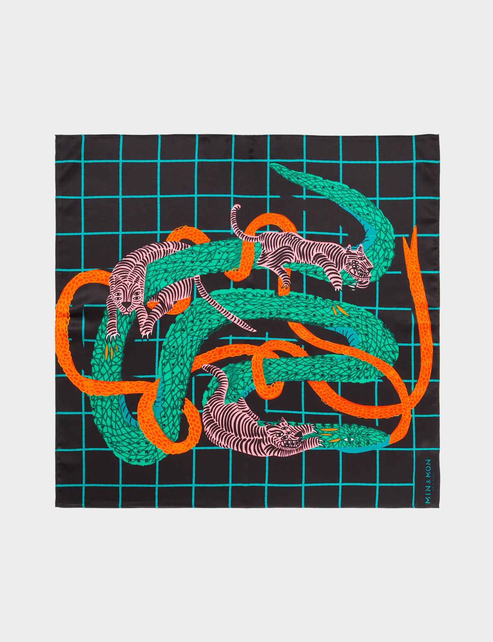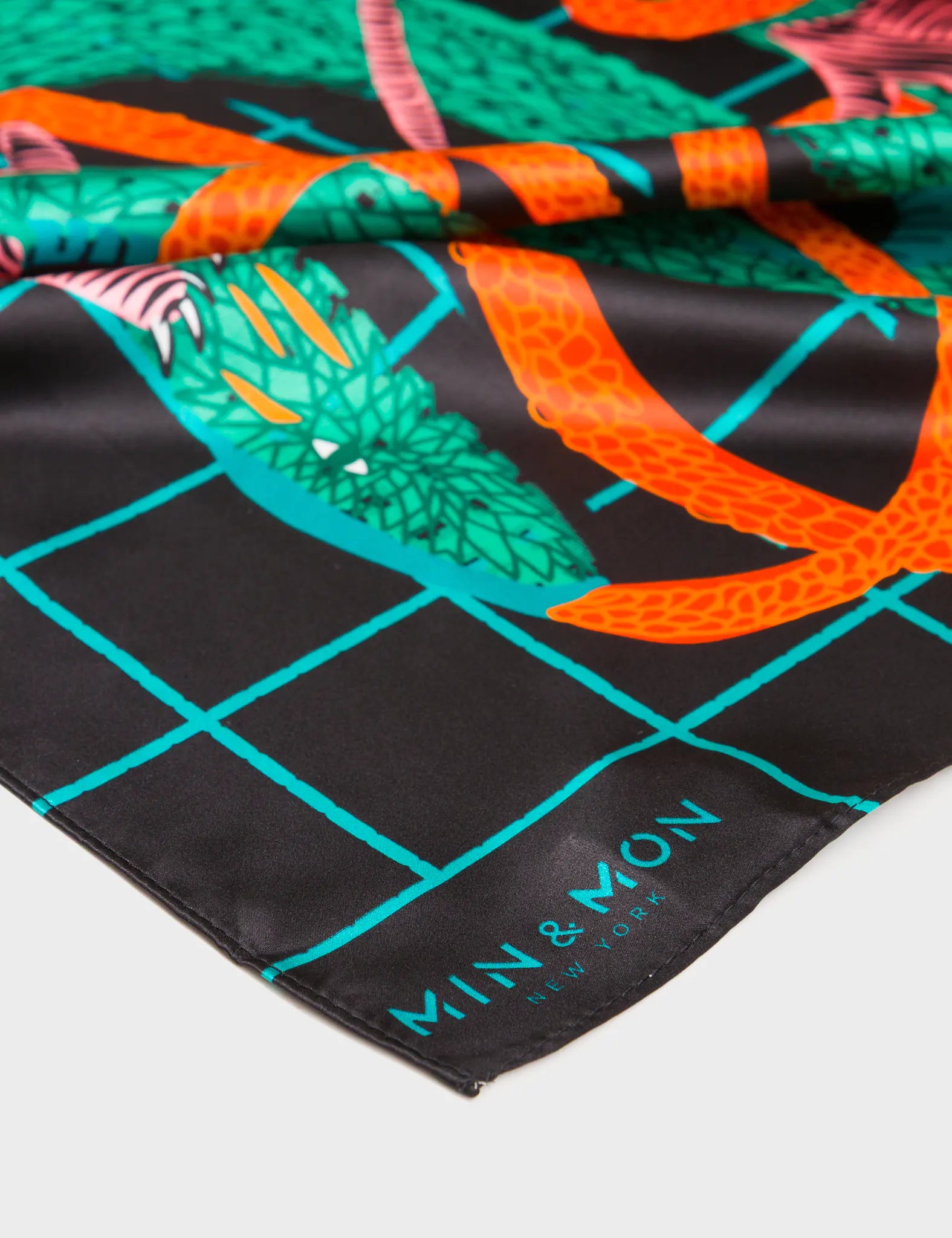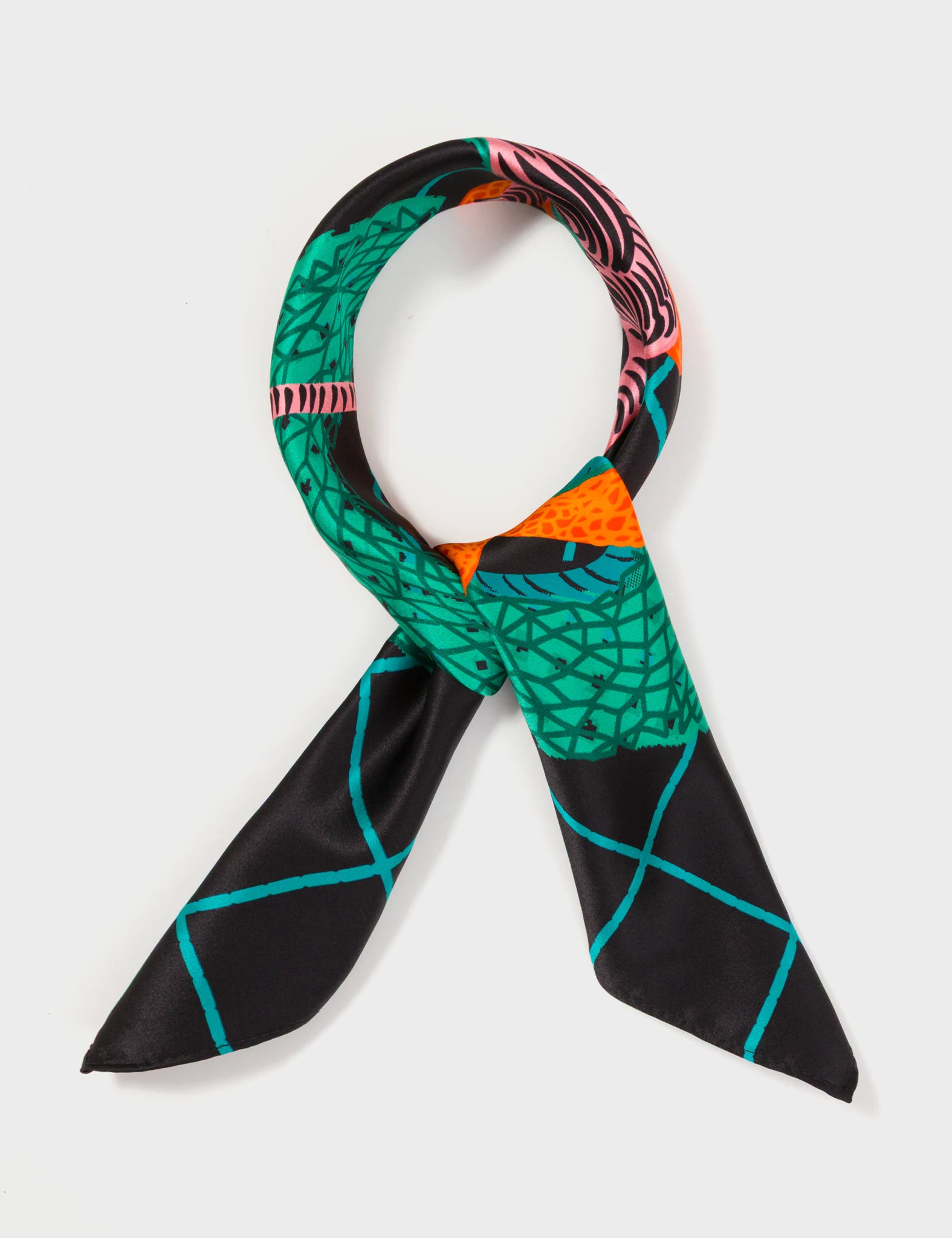 Head, neck, or bag—this 100% silk mischief-maker goes wherever the cute chaos calls. Equal parts giggle and glam!