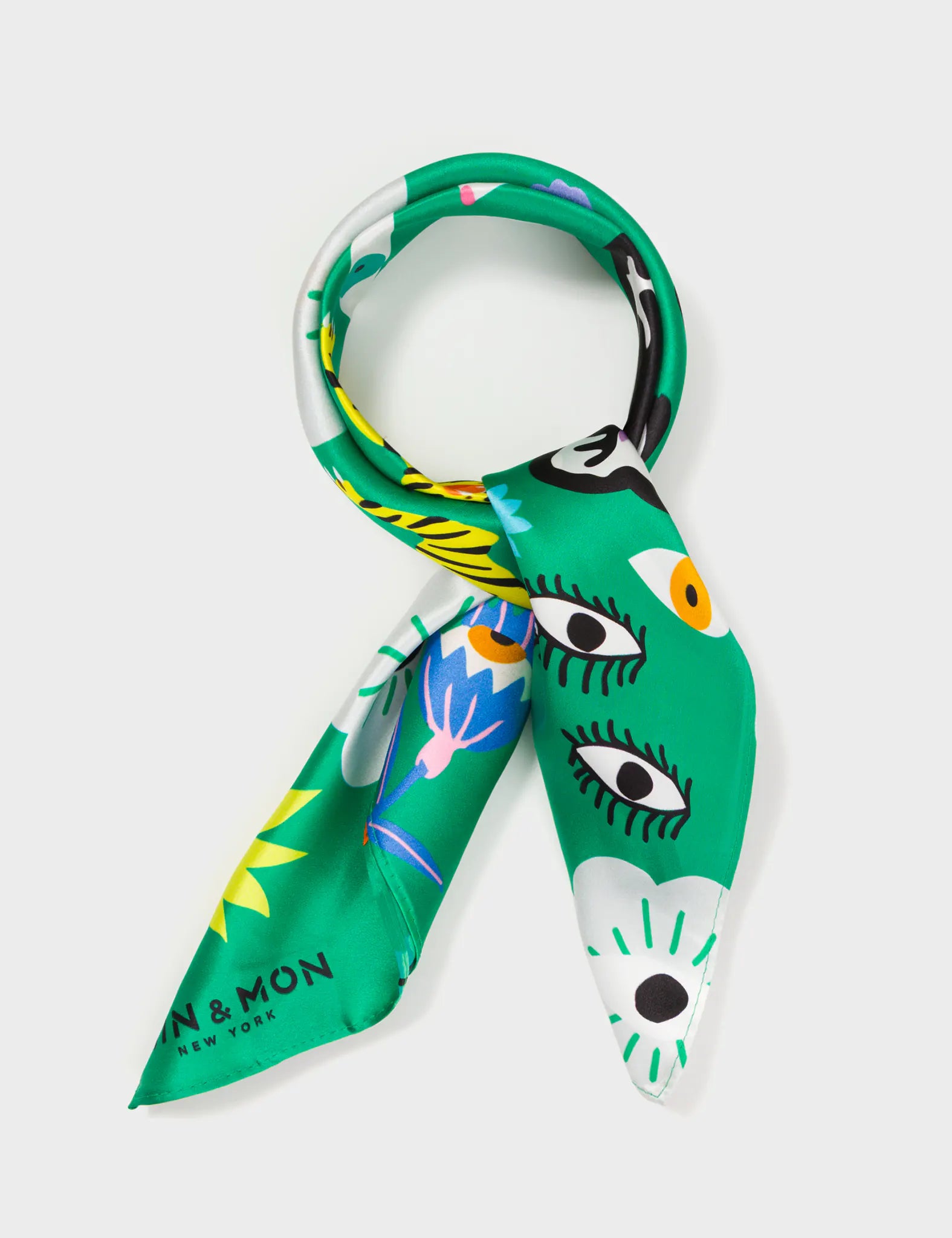 Green Silk Headscarf - Floral Fall - Main View
