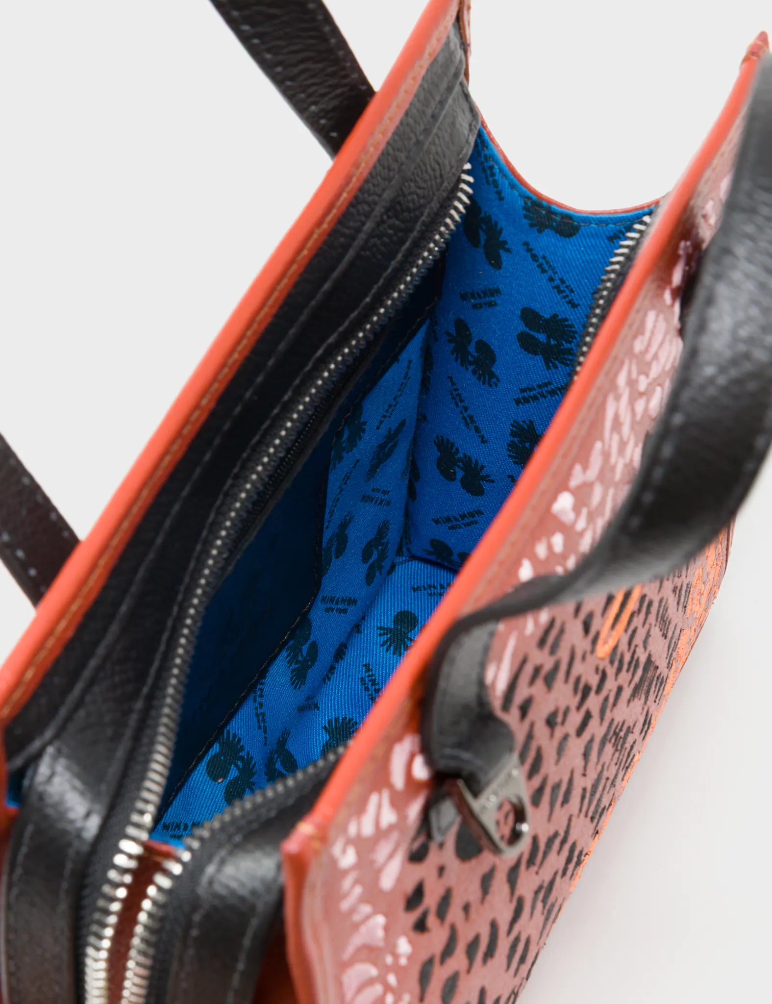 Simon Baked City Brown Leather Small Handbag - Retro Tiger Print