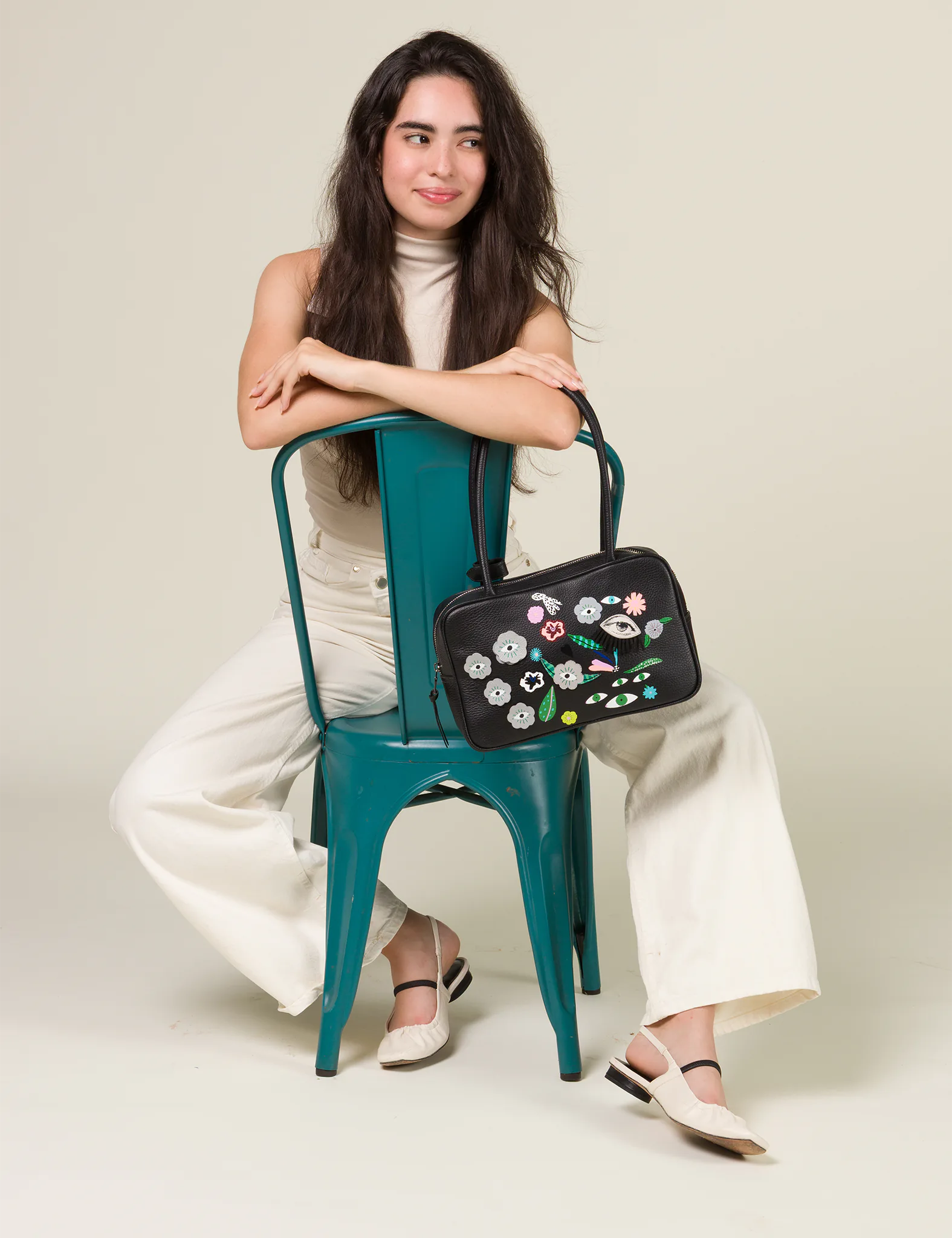 121 Shoulder Bag Black Leather - Floralia Design
