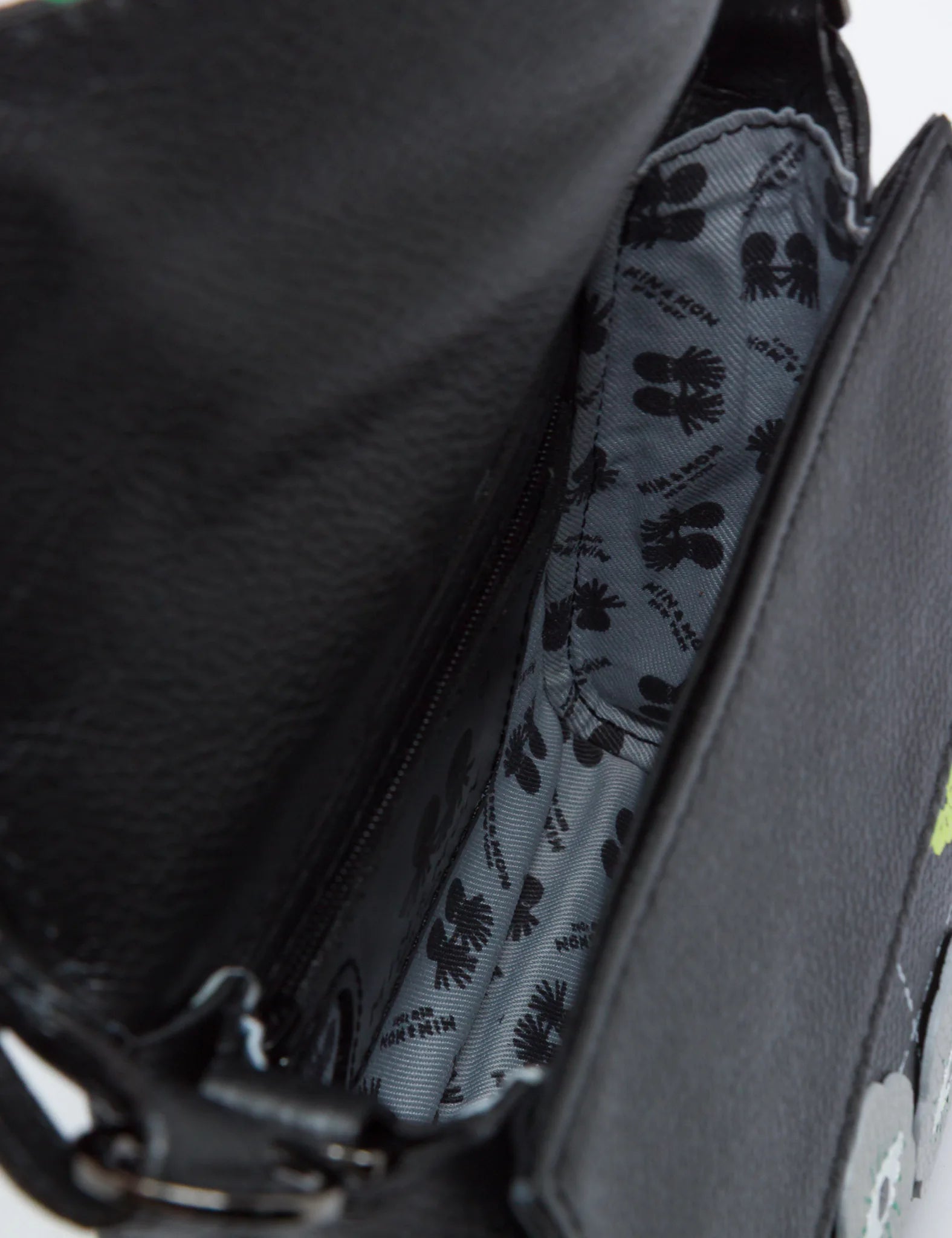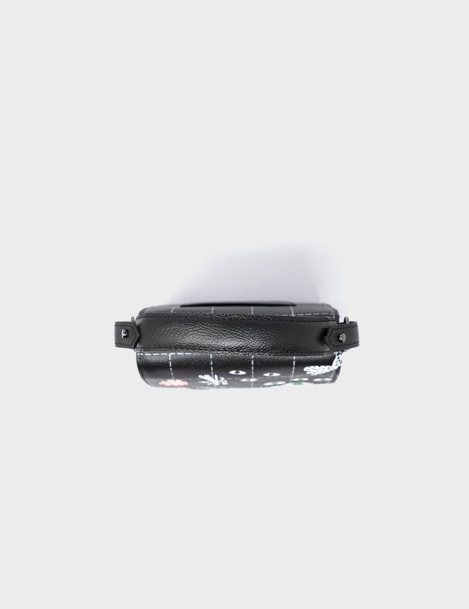 Anastasio Micro Crossbody Handbag Black Leather - Floralia Embroidery