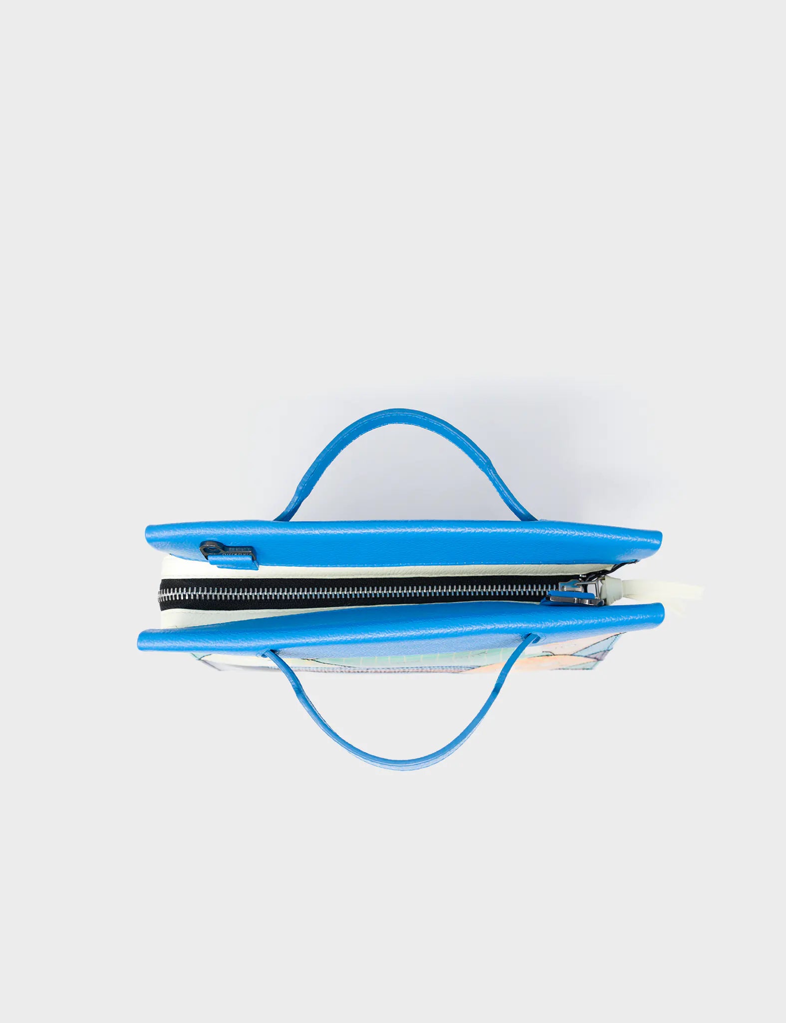 Vali Small Crossbody Ibiza Blue and Black Leather Bag - Happy Mountains Print