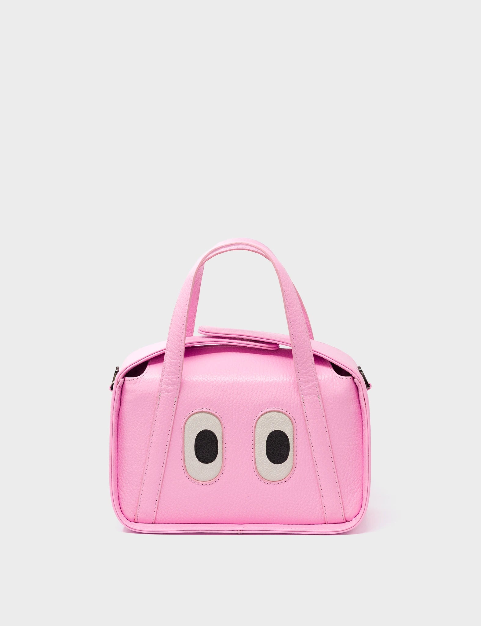Benji Small Crossbody Taffy Pink Pink Leather Bag - Eyes Engraved