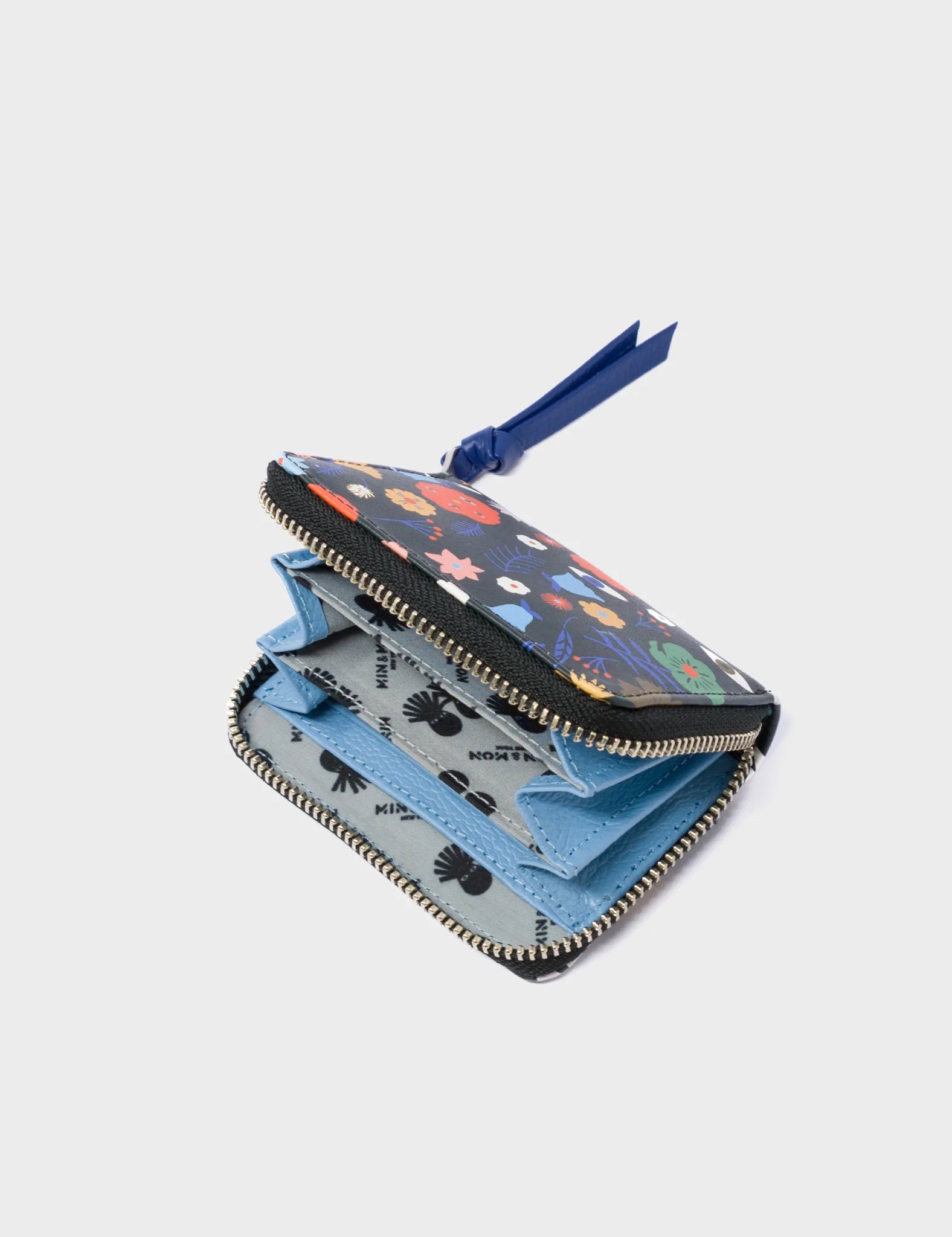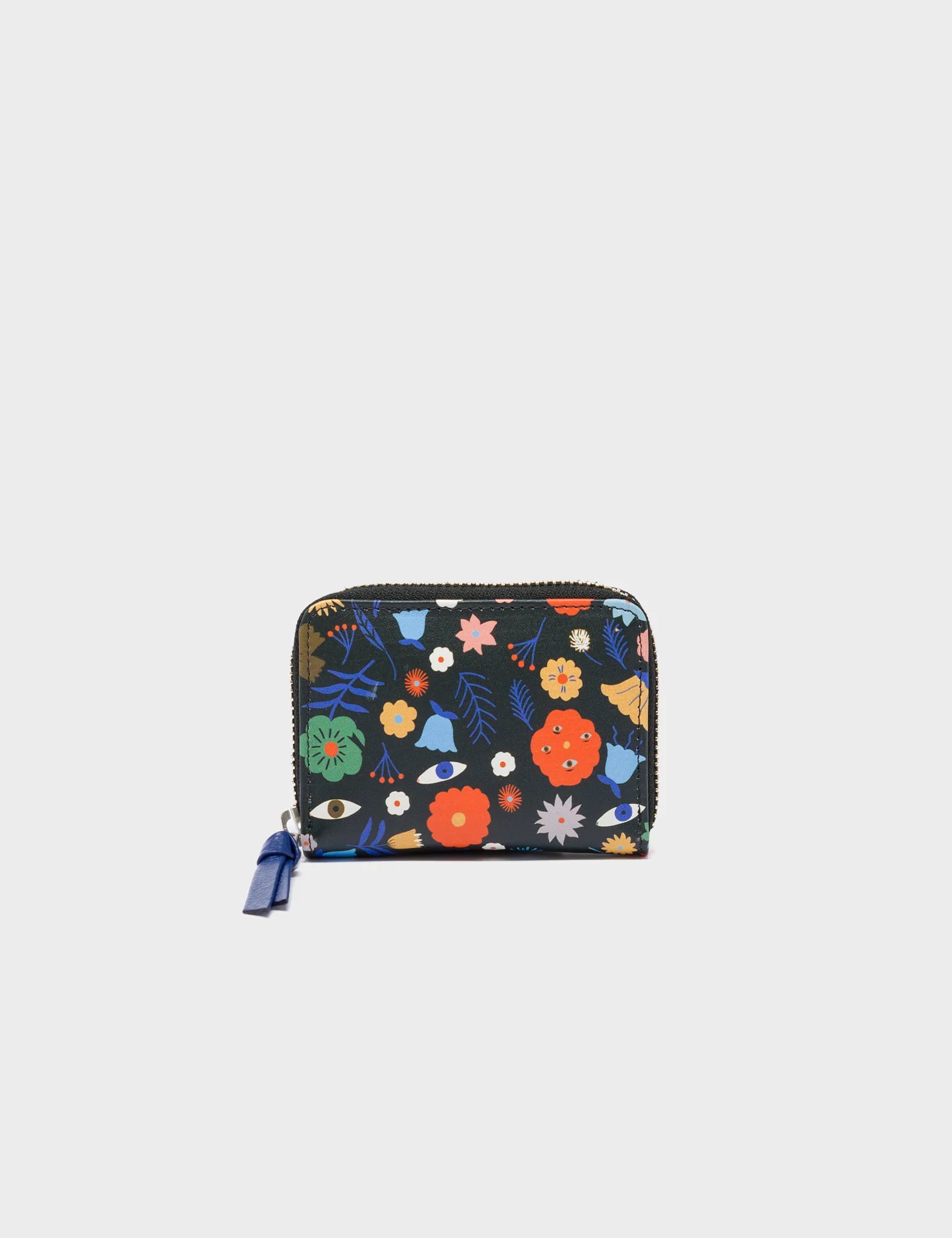 Frodo Black Leather Zip Around Wallet - Flowers Print