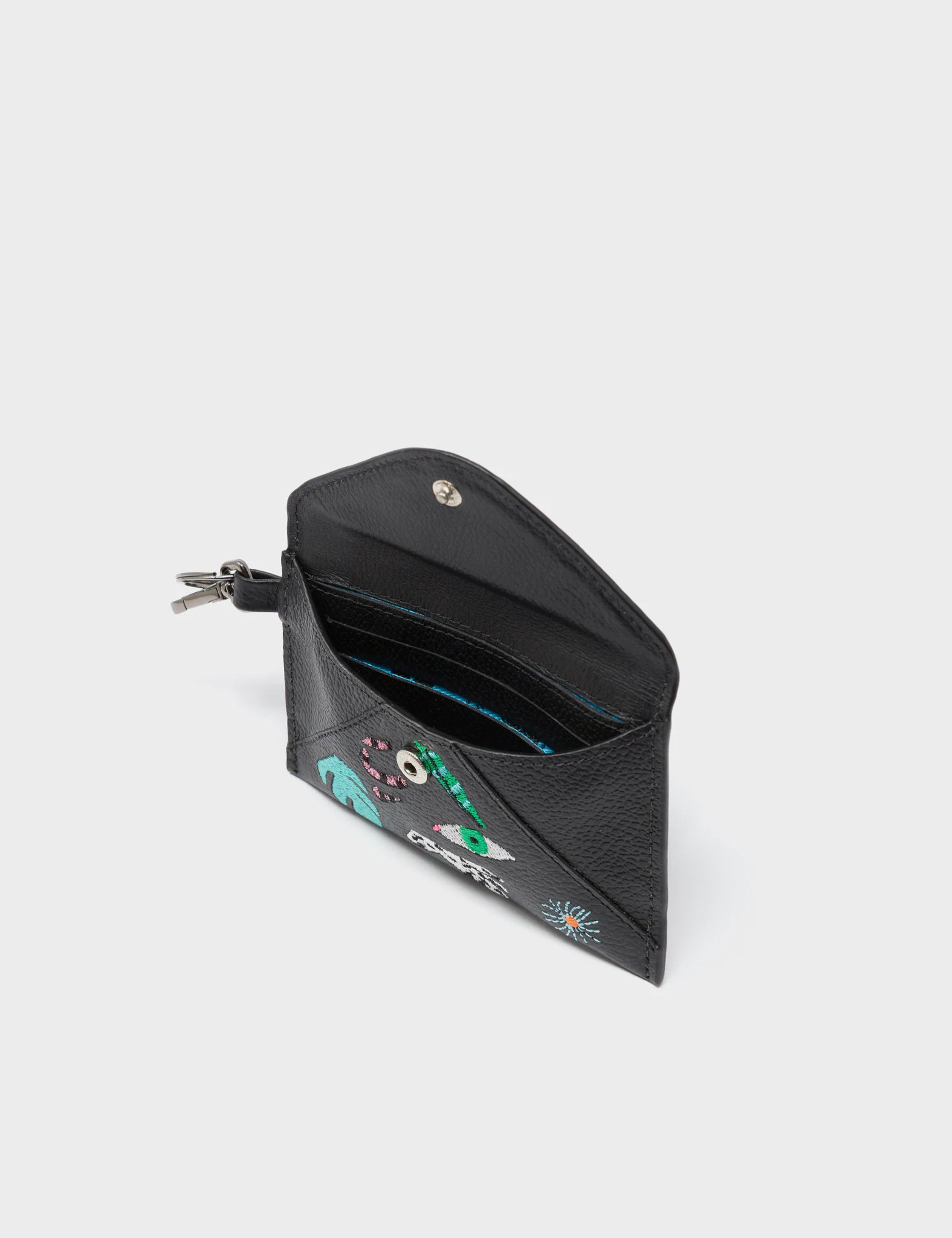 Fabian Black Leather Wallet - Autumn Blush Embroidery