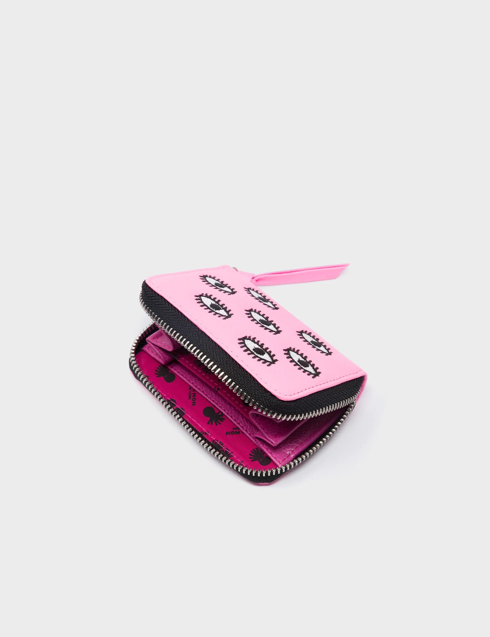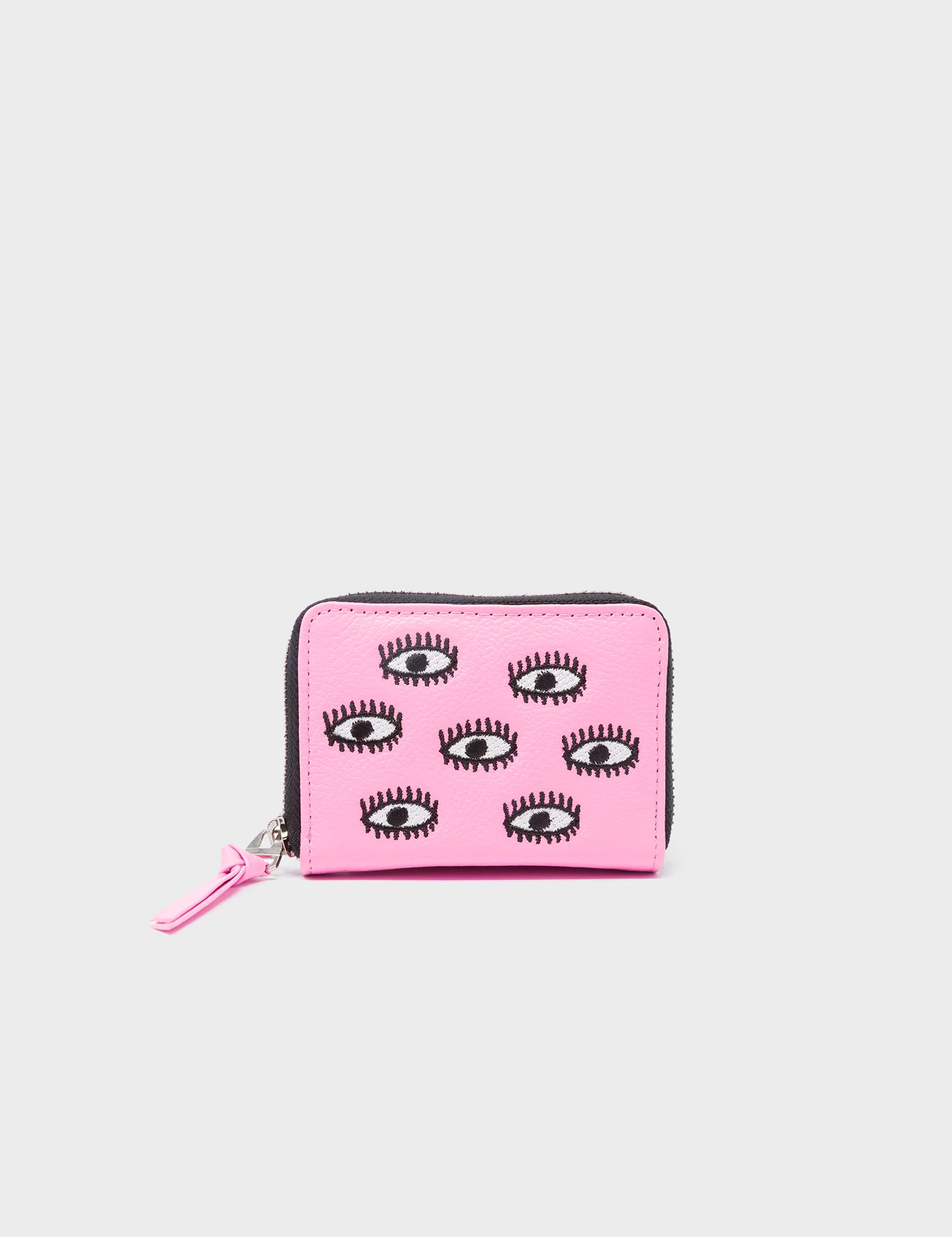 Frodo Bubblegum Pink Leather Zip Around Wallet - Eyes Embroidery