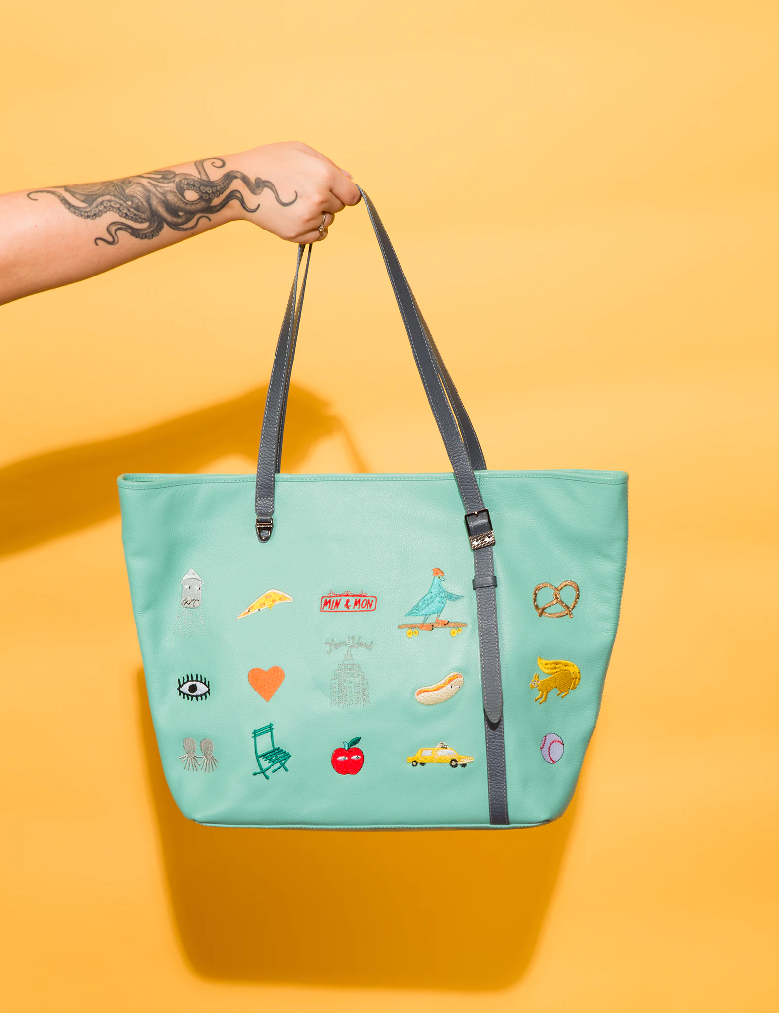 In an exclusive interview, our newest Cover Girl, Pigeonista, took us on an exclusive tour of her hometown! Depicting all her faves in embroidered icons, on an ocean blue leather tote, this It- Bird certified bag has the inside scoop on NYC and hardware to help you carry it multiple ways through the concrete jungle. Just don’t forget to swing by Pigeonista’s ultimate snack spot, the nearest…