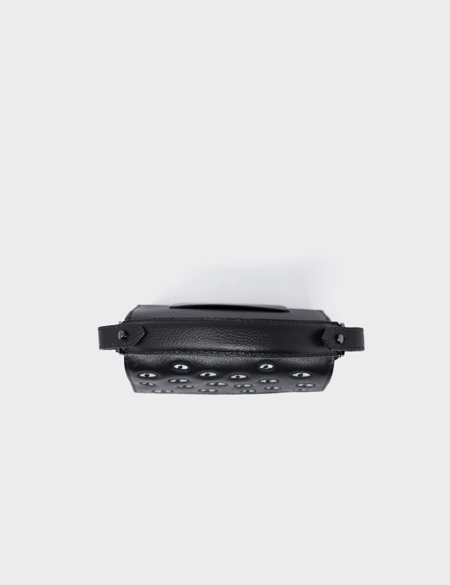 Anastasio Micro Crossbody Handbag Black Leather - All Over Eyes Design
