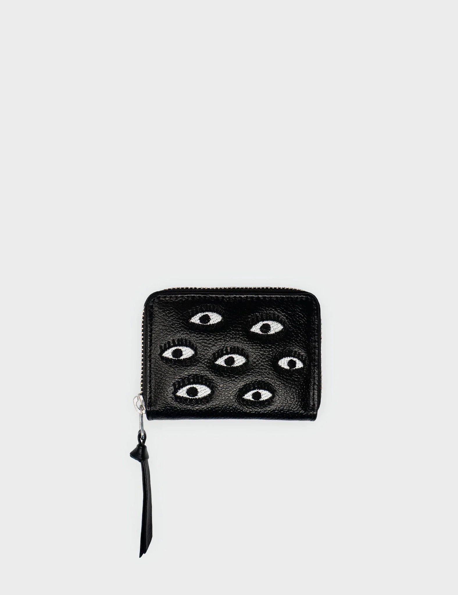 Frodo Black Leather Zip Around Wallet - Eyes Embroidery