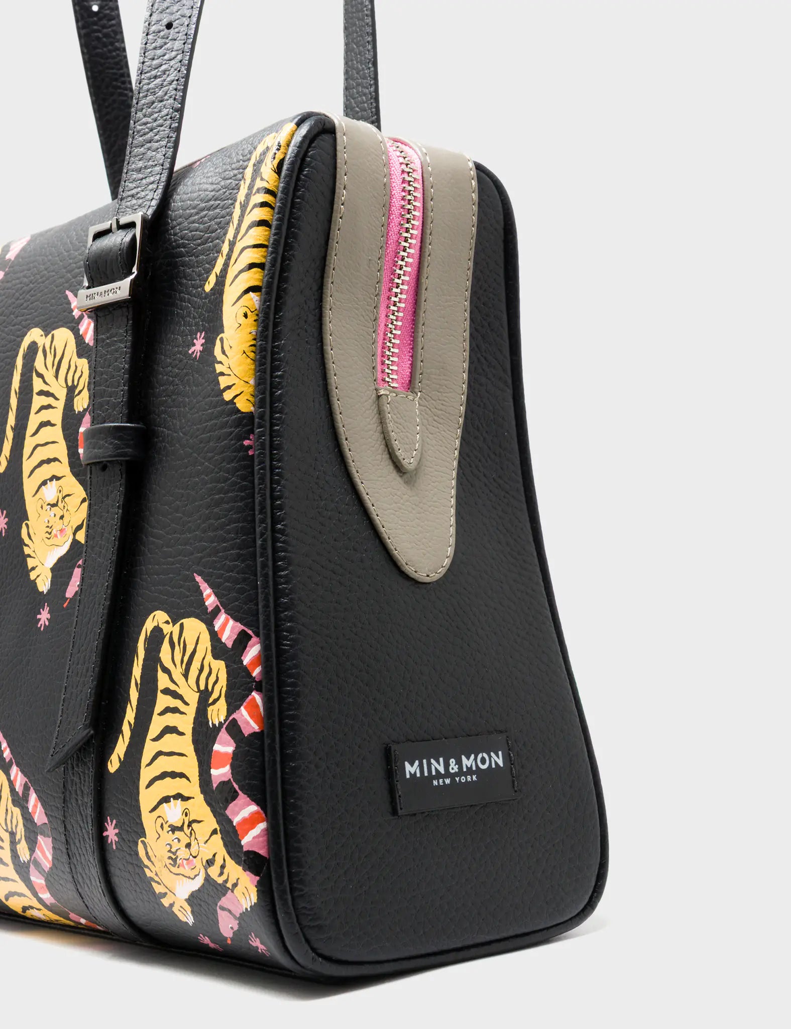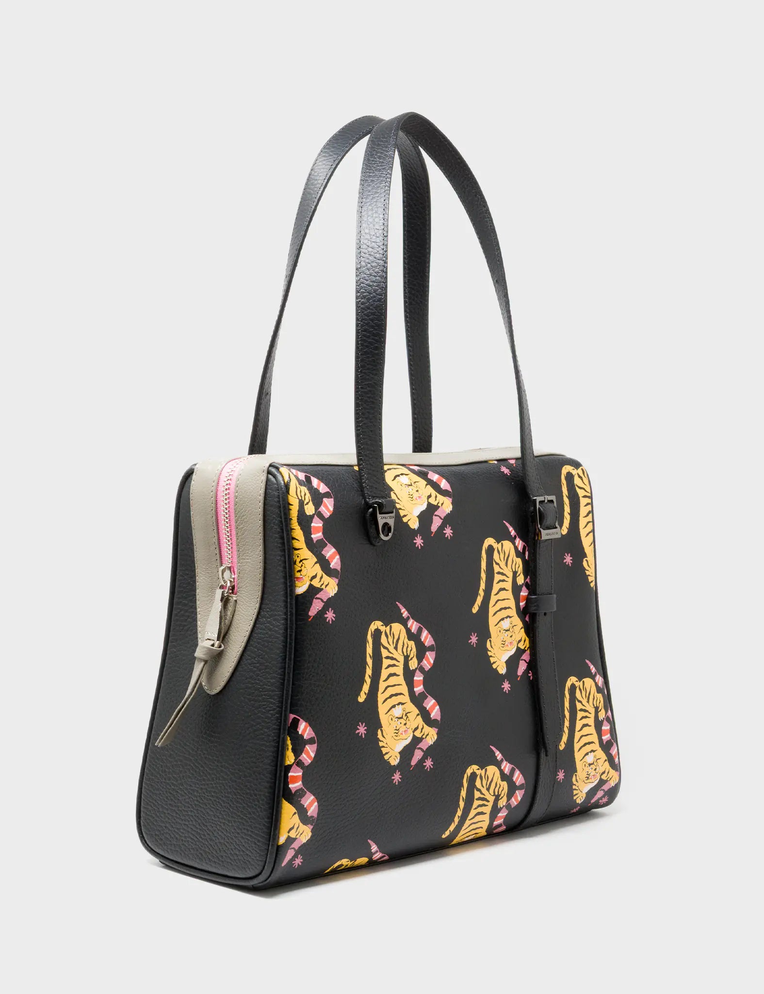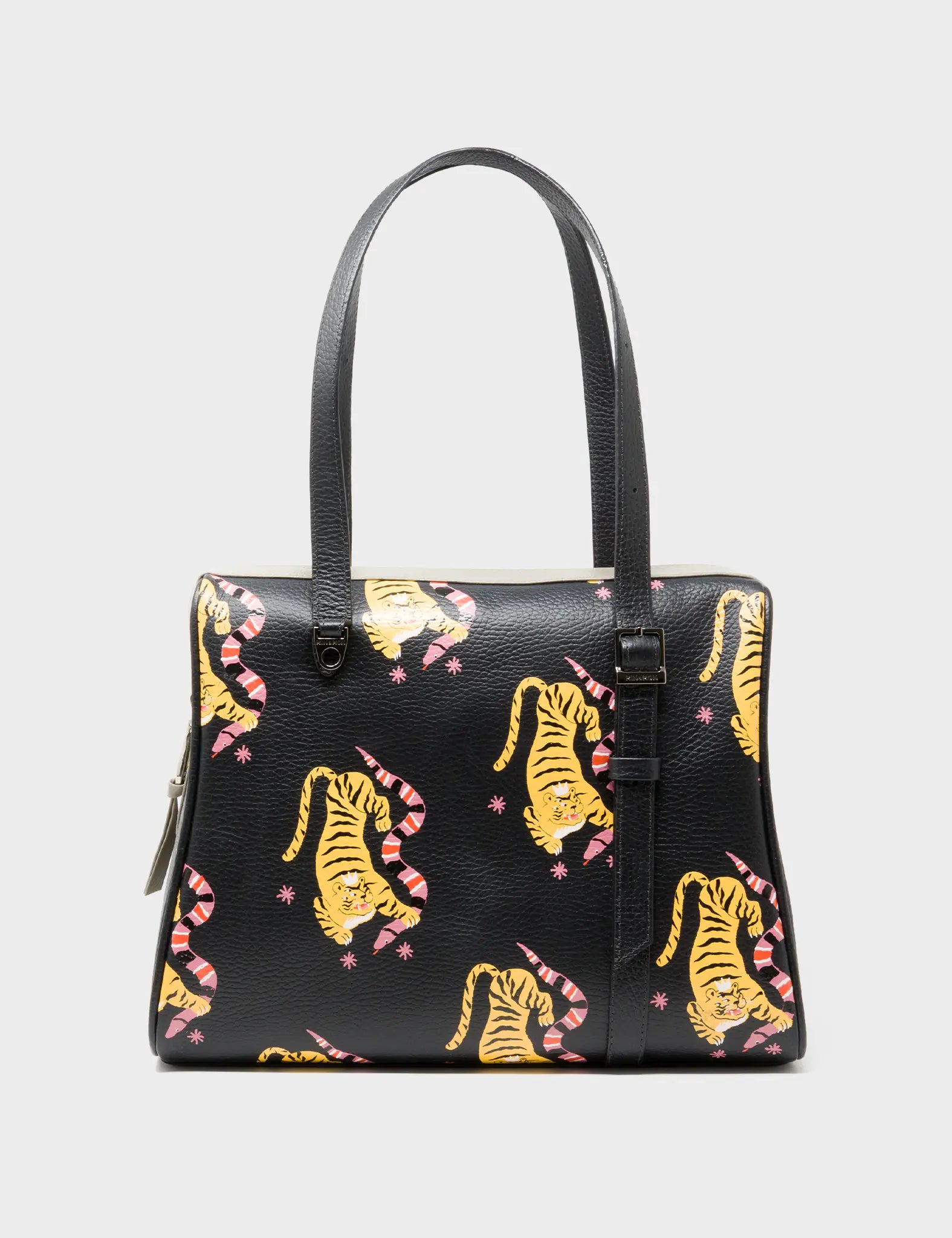 Esther Black Satchel Bag - Tiger and Snake Design