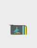 Fausto Stormy Gray Leather Zip-around Cardholder - Pigeonista Embroidery