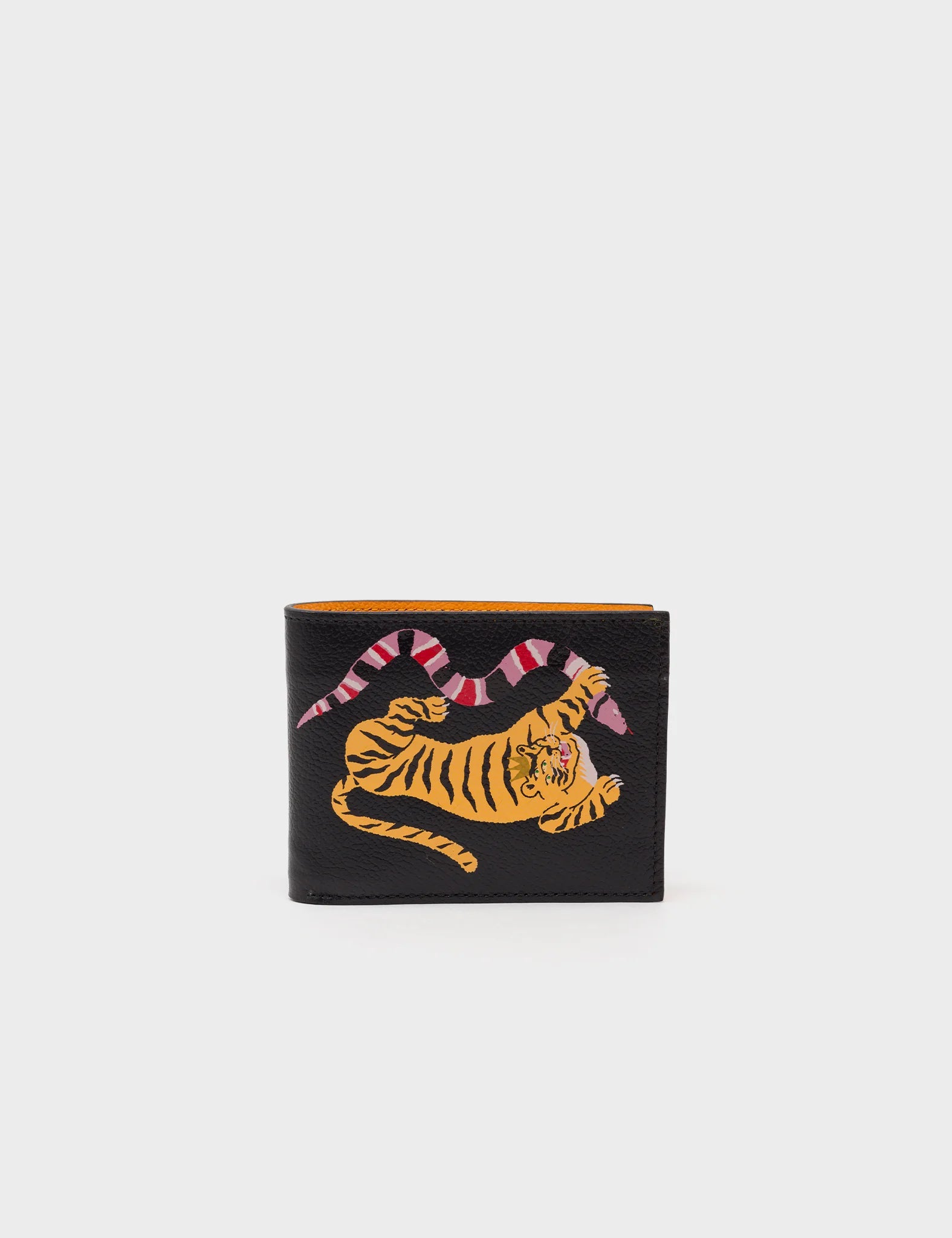 Felicia Black Leather Bifold Wallet - Tiger and Snake Print