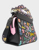 Vali Black Leather Crossbody Handbag Plastic Handle - Autumn Blush Embroidery